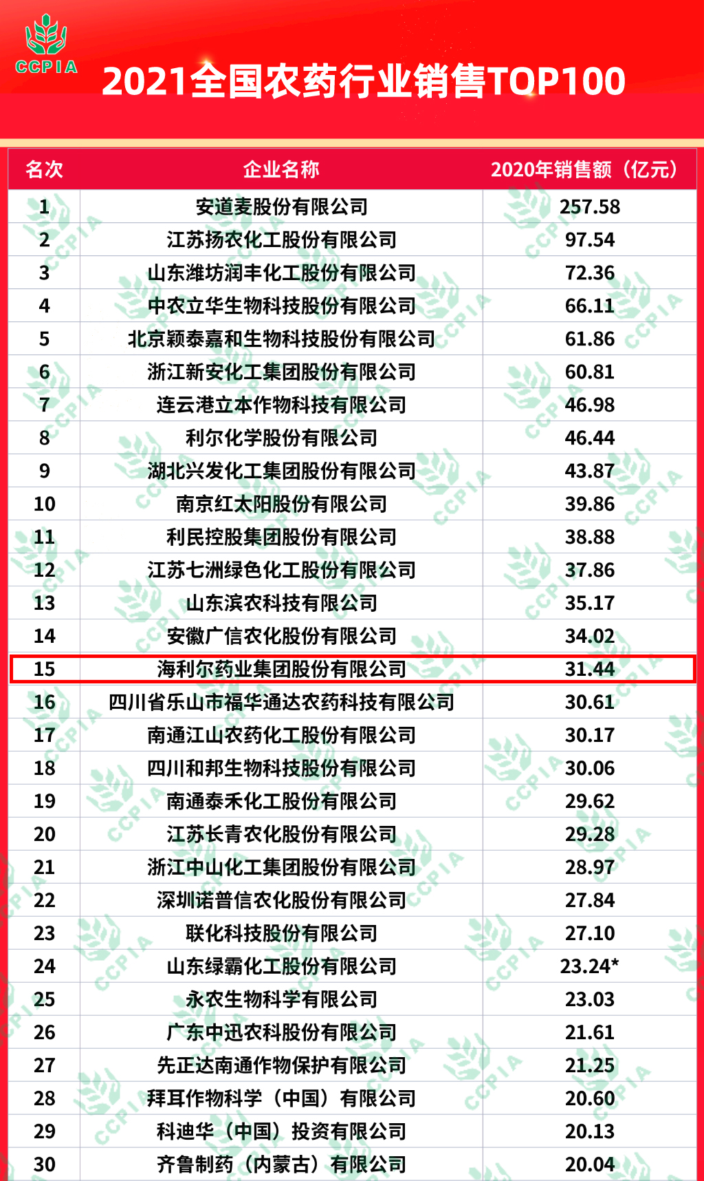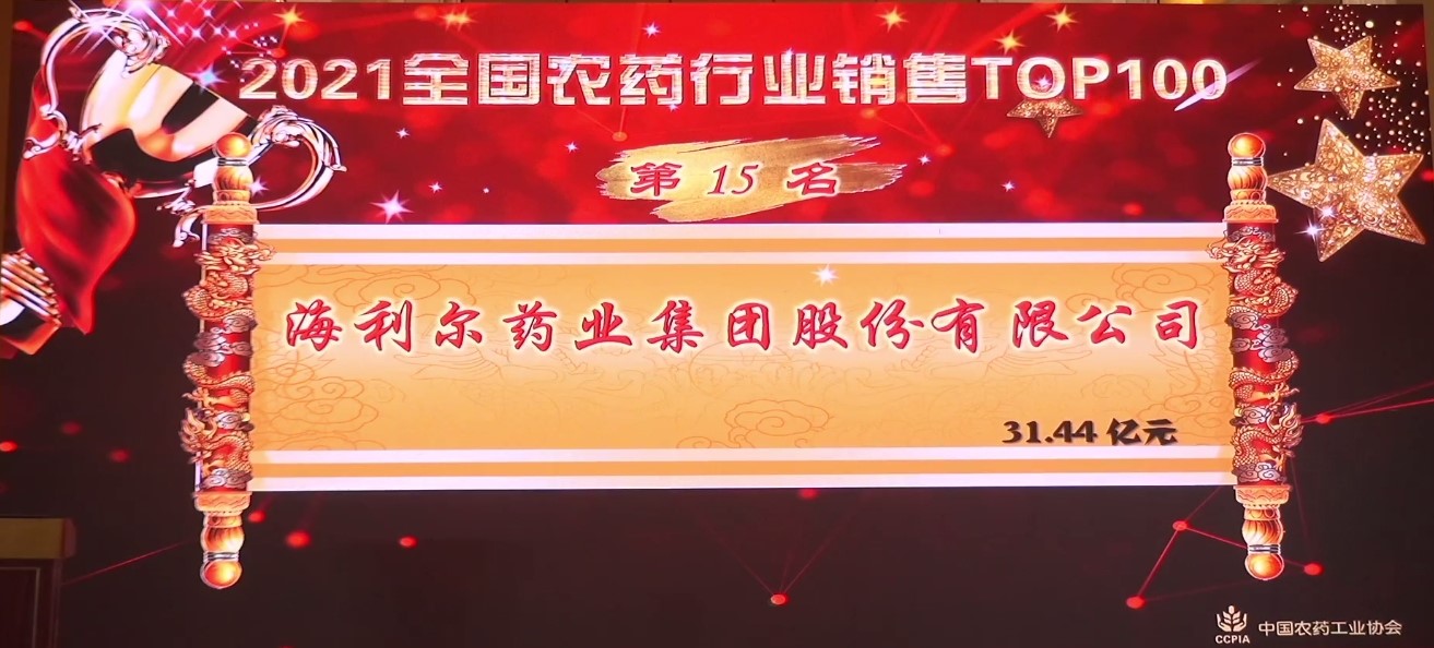 On May 12, the 8th pesticide industry economic operation analysis meeting and pesticide industry ranking conference was held in Hefei, Anhui Province. Hailie、r Pharmaceutical Group Co., Ltd. ranked 15th in the top 100 list of national pesticide industry sales in 2021 with a sales volume of 3.144 billion yuan.In 2020, the outbreak of COVID-19 benefited from the support of relevant national policies and the concerted efforts of the whole industry. During the epidemic period, pesticide production was conducted orderly, output increased steadily, and the main economic indicators of the whole industry continued to grow. From the list, the sales volume of Top100 pesticide enterprises in China is growing. Hailie、r Pharmaceutical Group has moved 6 places from 21 last year, ranking 15th in the top 100 pesticide sales list in China.