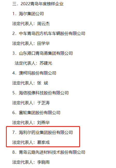本次典礼经过连续多年的品牌积累已经成为青岛企业界最有影响力的活动之一,对全面展示青岛经济成就,促进经济高质量发展,打造一流营商环境,营造尊重企业家、激励企业家干事创业的社会氛围发挥着重要作用,集团此次入选,充分体现了政府部门对于海利尔取得快速高质量发展的充分认可和肯定。