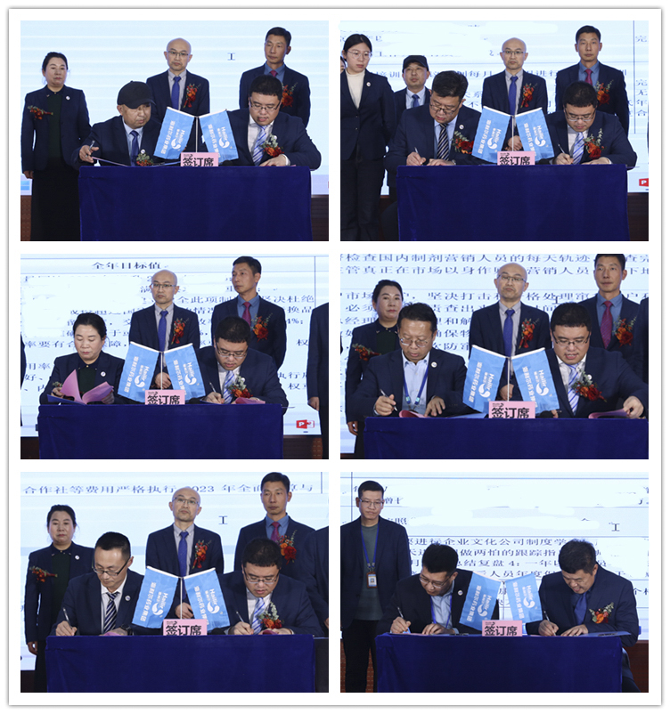 认真听取总裁年会报告后,各板块管理人员现场签订了2023年度目标责任状,集团总裁葛家成与各板块签订目标责任状并带领全体中高层进行就职宣誓。