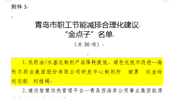 12月13日,青岛市总工会公布了2022年青岛市“查保促”活动优胜单位、安全生产标准化班组和职工节能减排合理化建议“金点子”、生产安全事故隐患排查优秀职工三项活动获奖名单。betway西汉姆联官方网站喜获青岛市“查保促”活动优胜单位;集团研发中心制剂所“农药油/水基化制剂产品降耗提效、绿色化技术改进”项目入围青岛市职工节能减排合理化建议“金点子”名单。