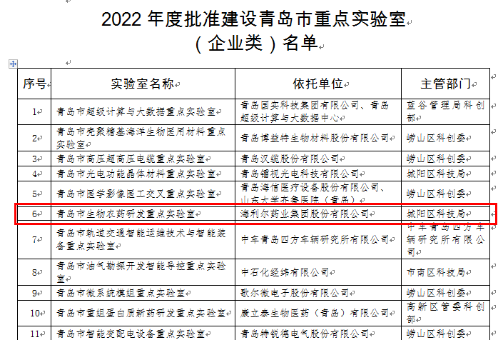 近日,青岛市科学技术局下发《关于批准建设青岛市海洋生物多样性与保护等重点实验室的通知》,公布批准建设青岛市海洋生物多样性与保护等市重点实验室名单,由集团承担的“青岛市生物农药研发重点实验室”荣登榜单。