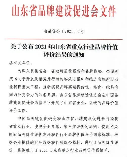 为深入贯彻省委、省政府质量强省和品牌战略,全面落实《关于开展质量提升行动的实施方案》和推进实施新动能转换重大工程,推动实现品牌高端提价值,培育一批具有国内外竞争力的知名品牌,山东省品牌建设促进会在中国品牌建设促进会的指导下开展了山东省企业、区域的品牌价值评价工作。