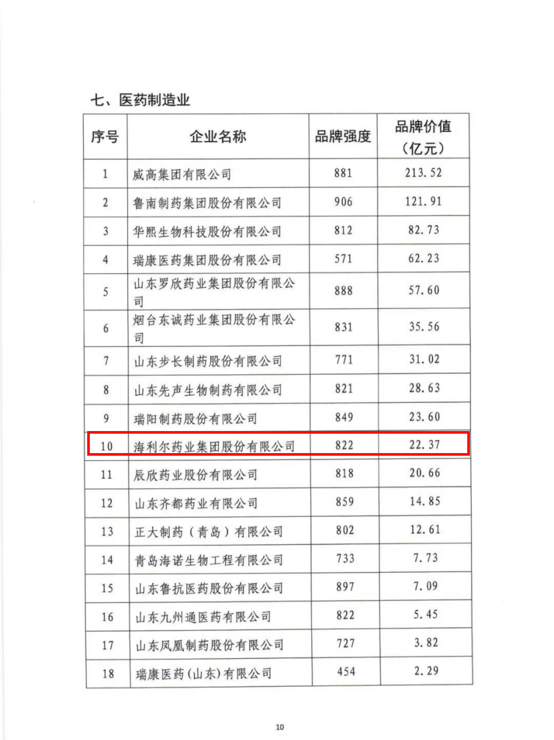 中国品牌建设促进会和山东省品牌建设促进会围绕我省重点行业,按照企业自愿、第三方评价的原则,使用相关国际品牌价值评价方法和各行业品牌价值评价国家标准,根据企业提供的财务数据和各项综合指标,进行了品牌价值评价,最终推出了2021山东省重点行业品牌价值强榜单。betway西汉姆联官方网站以22.37亿元品牌价值入选医药制造行业榜单第十名!