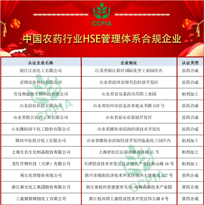 10月11日,“中国农药行业HSE管理体系合规企业”名单发布,betway西汉姆联官方网站旗下子公司青岛奥迪斯生物科技有限公司榜上有名。