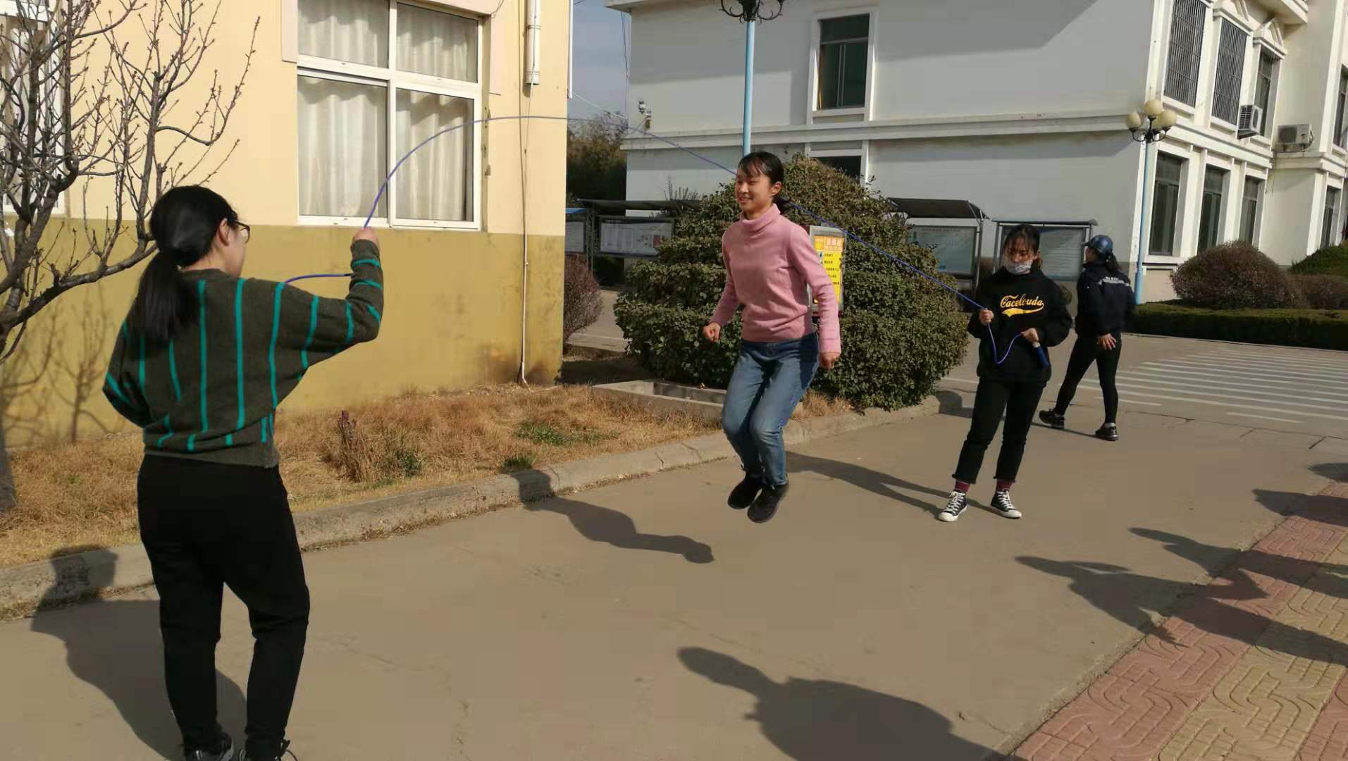 赛前紧张的气氛让每位参赛者擦掌握拳,一声令下,跳绳飞速旋转,观众呐喊助威,队友相互配合,加油打气。