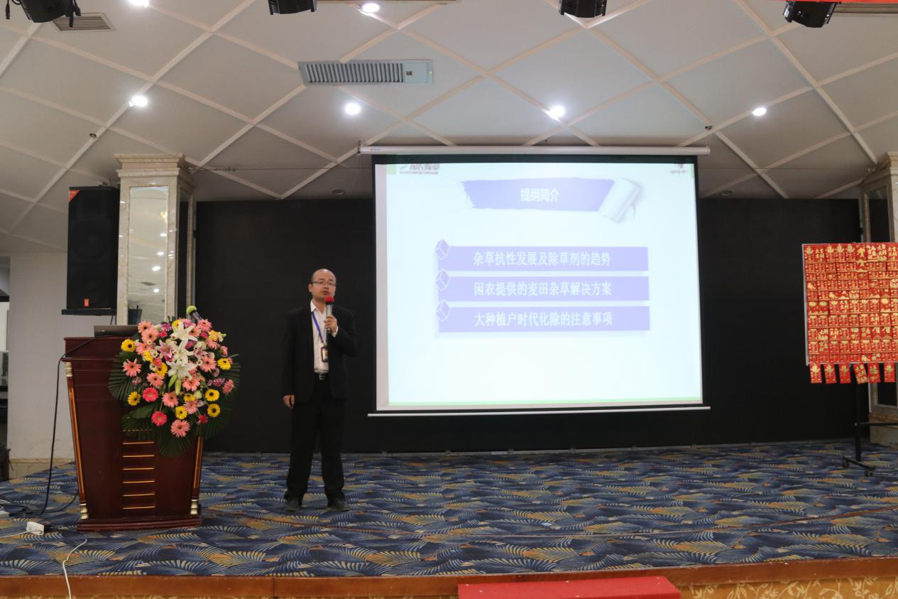 除草剂,青岛闲农是恶抗性杂草防除方案研创者。青岛闲农技术经理雷苏秦从杂草抗性发展及除草剂趋势、闲农提供的麦田杂草解决方案、大种植户时代化除的注意事项等三个层面进行了专业知识讲解并现场演示差异化试验。