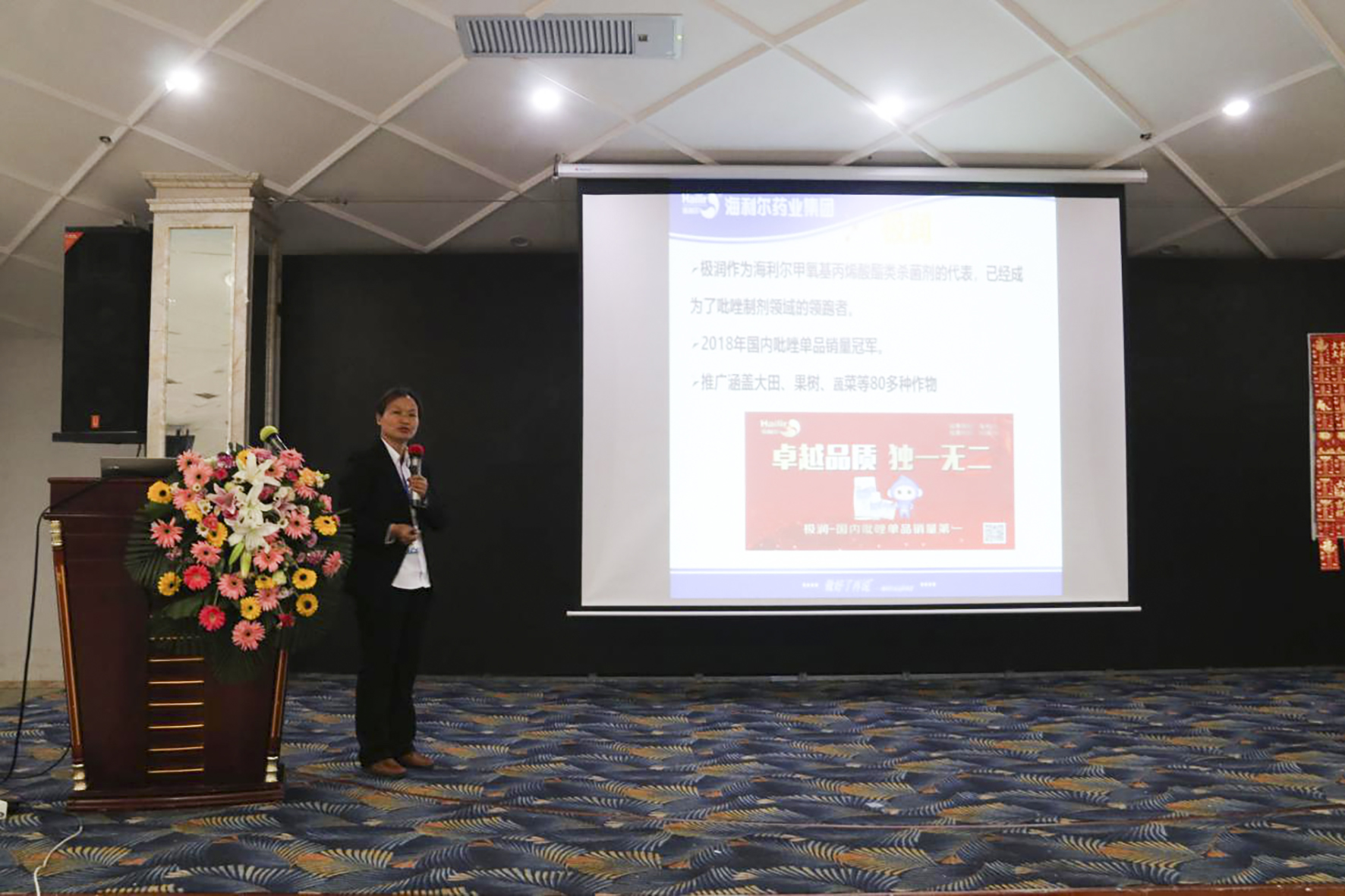 在杀虫杀菌剂专题中,海利尔技术专家玄秀兰以实际极润、极歼、龙破斩、金盾等产品在作物上的实际应用案例,为合作伙伴提供了专业作物解决方案,并发布2019年新品,如黑光灯、细霸、多米提亮、喜多美、封潜、库丰等产品。