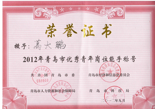 近日,共青团青岛市委、青岛市经济和信息化委、青岛市人力资源和社会保障局、青岛市科技局等四部门联合下发文件,命名表彰2012年青岛市杰出(优秀)青年岗位能手,betway西汉姆联官方网站副总裁兼国际发展部部长葛大鹏被评为青岛市优秀青年岗位能手。