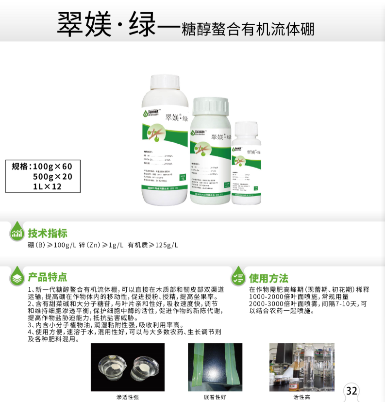 产品名称 翠媄·绿糖醇螯合有机流体硼